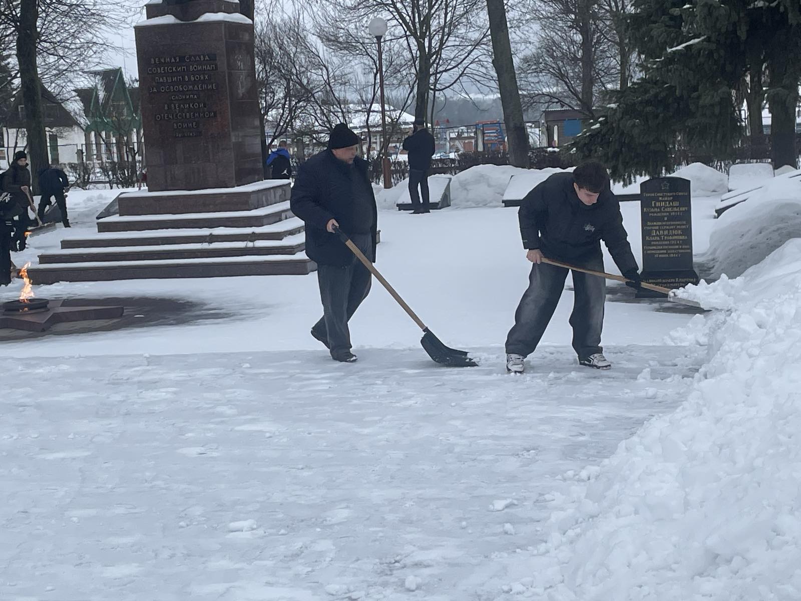 28.01.2026 г. учащиеся военно-патриотического клуба "Феникс" откликнулись на обращение руководства Слонимского БРСМ, убрали снег у памятника Воинам-освободителям.