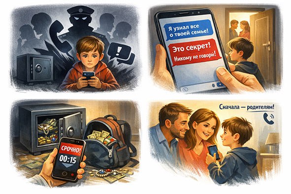 Любой запрет «рассказать родителям» — первый и самый верный признак мошенничества.