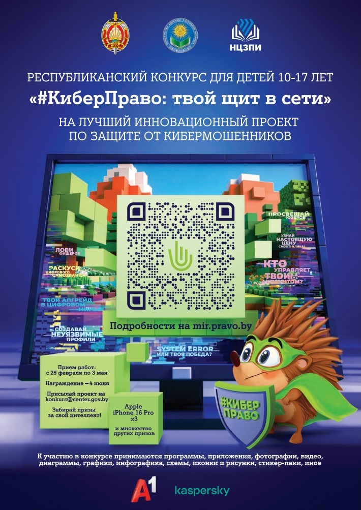 С целью принятия дополнительных мер, направленных на обучение детей цифровой грамотности, повышение уровня осведомленности подростков и их родителей о способах защиты от киберпреступлений, а также стимулирования к созданию собственных приложений или алгоритмов для защиты персональных данных, МВД совместно с Министерством образования, Национальным центром законодательства и правовой информации проводит республиканский конкурс для детей на лучший инновационный проект по защите от кибермошенников «#КиберПраво: твой щит в сети».