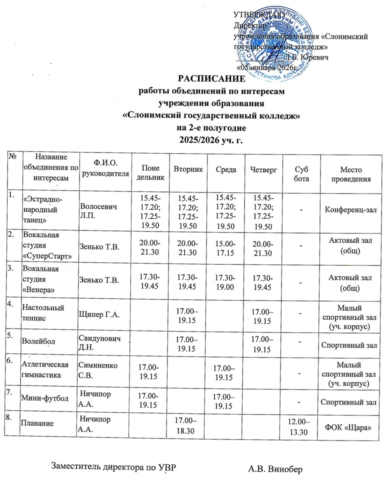 Расписание работы объединений по интересам на 2-полугодие 2025/2026 уч.г.