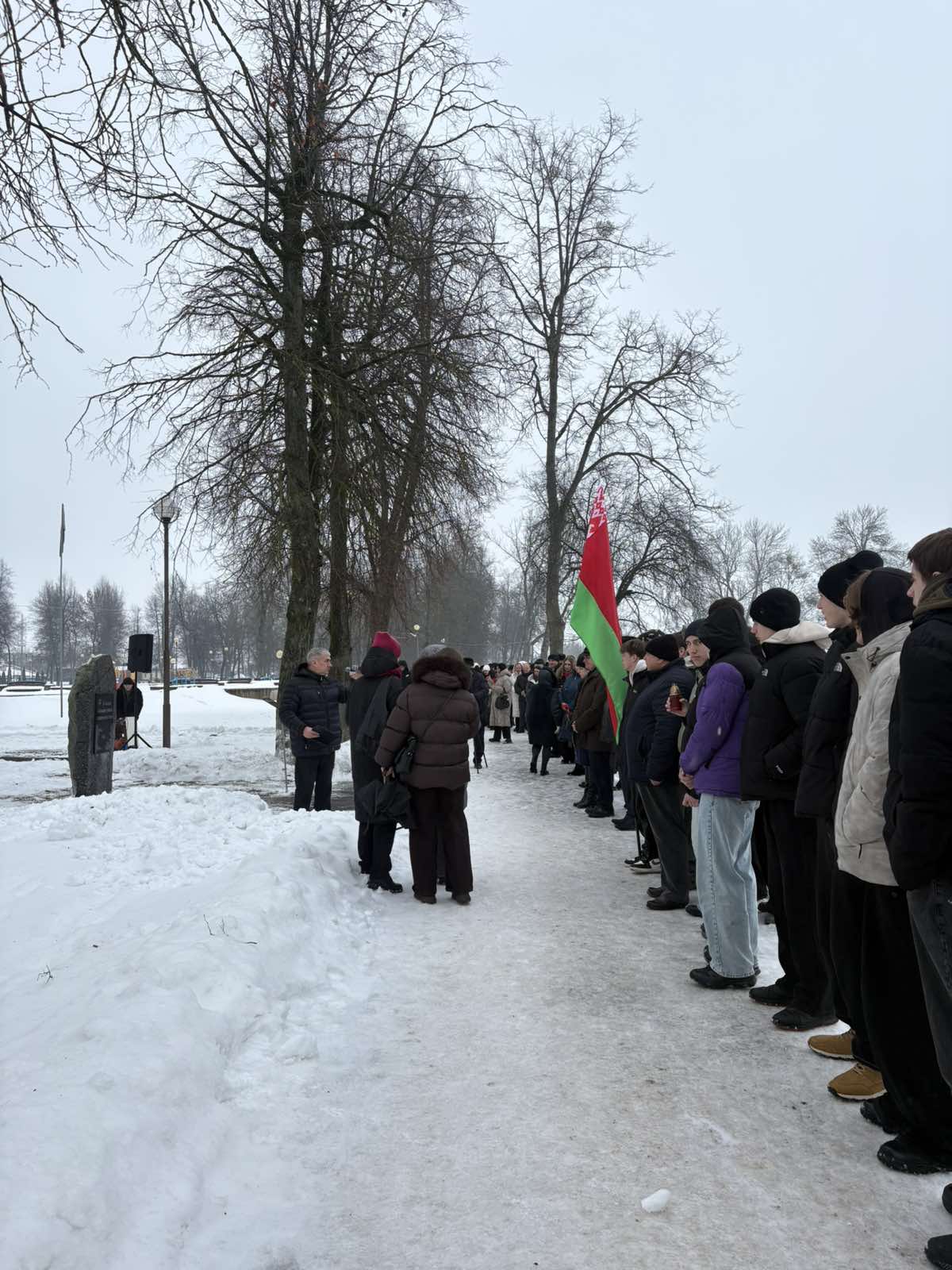 27 января 2026 года учащиееся группы 31 ТС Слонимского ГК совместно с руководителем военно-патриотического воспитания Харлановым Ю.А., педогогом-организатором Акулич Е.А. приняли участие в митингах реквиемах "Слонимское гетто", посетив городской парк, урочище "Морги".