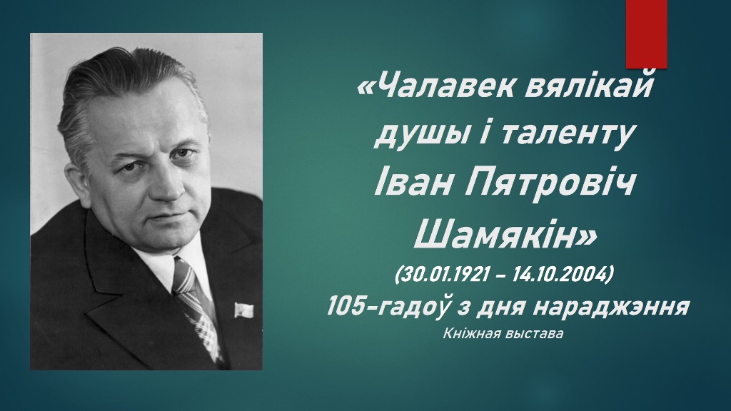 Іван Шамякін – выбітны беларускі пісьменнік, драматург, сцэнарыст і грамадскі дзеяч, Народны пісьменнік Беларусі. Яго пяру належаць такія вядомыя творы, як “Сэрца на далоні”, “Снежныя зімы”, “Атланты і карыятыды”, “Вазьму твой боль”, “Петраград – Брэст”, “Зеніт” і інш.
