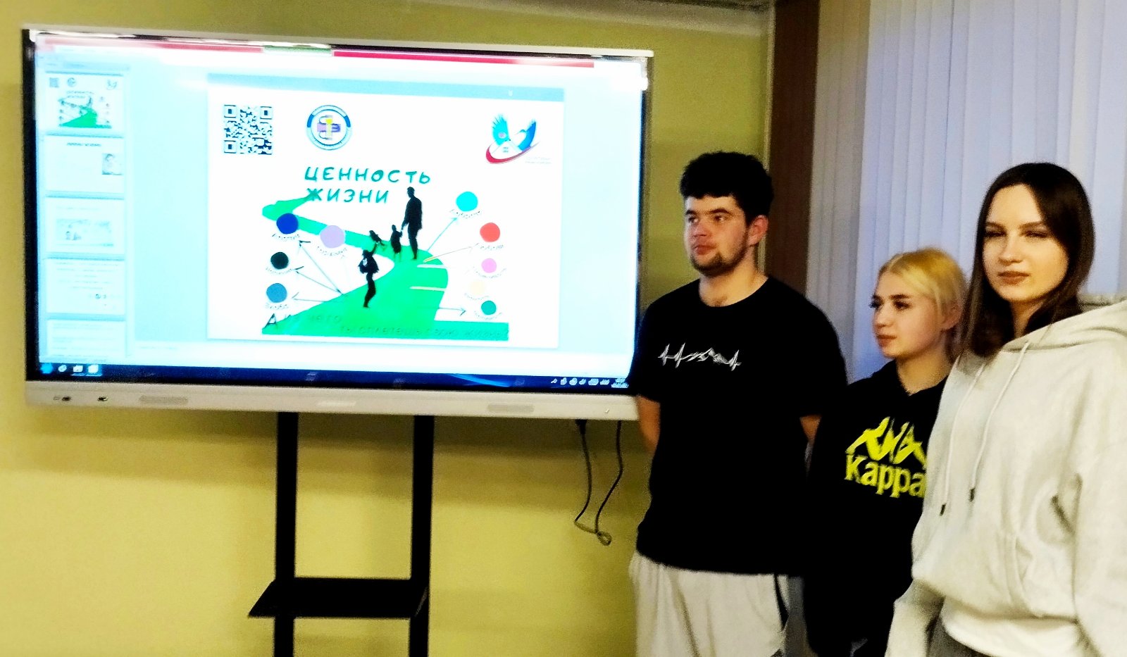 10 февраля 2026 года совместно со Слонимским районным отделением Республиканского общественного объединения «Матери против наркотиков» и обученные волонтеры 2 и 3 курса оказывали помощь в проведении занятия «Ценность жизни», в учреждении образования “Слонимский государственный колледж” среди 40 учащихся проживающих в общежитии по принципу «равный обучает равного».