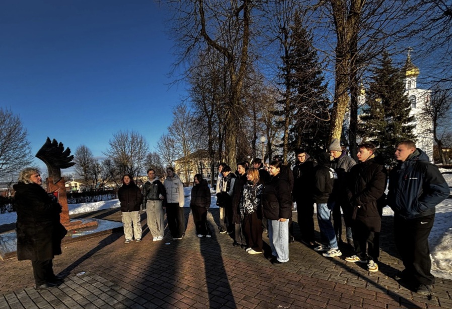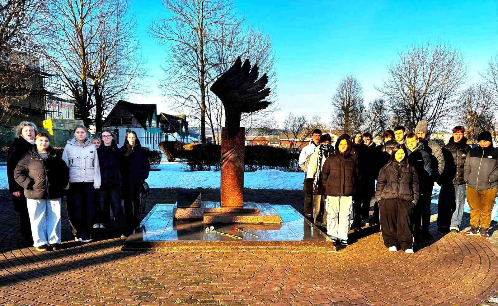 В рамках республиканской декады "Афганістан у лёсах сваіх землякоў" у памятника воинам - интернационалистам для учащихся, проживающих в общежитии колледжа, прошел воспитательный час "У каждого времени свои герои".