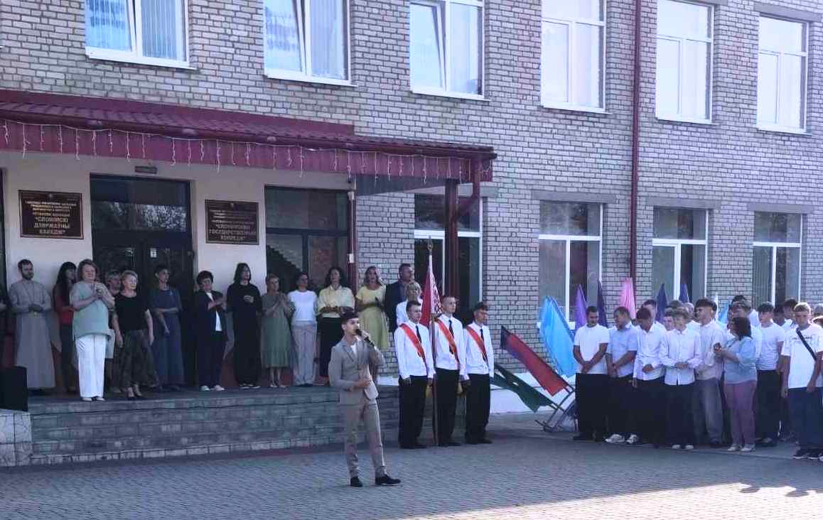 Традиционно 1 сентября в нашем колледже проводится торжественная линейка посвященная Дню Знаний. Все ребята отдохнувшие и загорелые ,снова собрались на территории колледжа. На торжественной линейке все застыли под звуки марша Преображенского, где знаменная группа колледжа, чеканя строевой шаг с гордостью пронесла государственный флаг Республики Беларусь.
