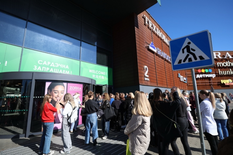 Ещё одной точкой стал торговый центр на улице Притыцкого. Здесь эвакуировали персонал и посетителей, а возле здания работали тематические площадки. Специалисты МЧС, Мингаза, Госэнергогазнадзора и Белорусского Общества Красного Креста помогали обучать граждан, как действовать при пожаре, как помочь пострадавшему до прибытия экстренных служб, и как правильно использовать средства первой помощи.