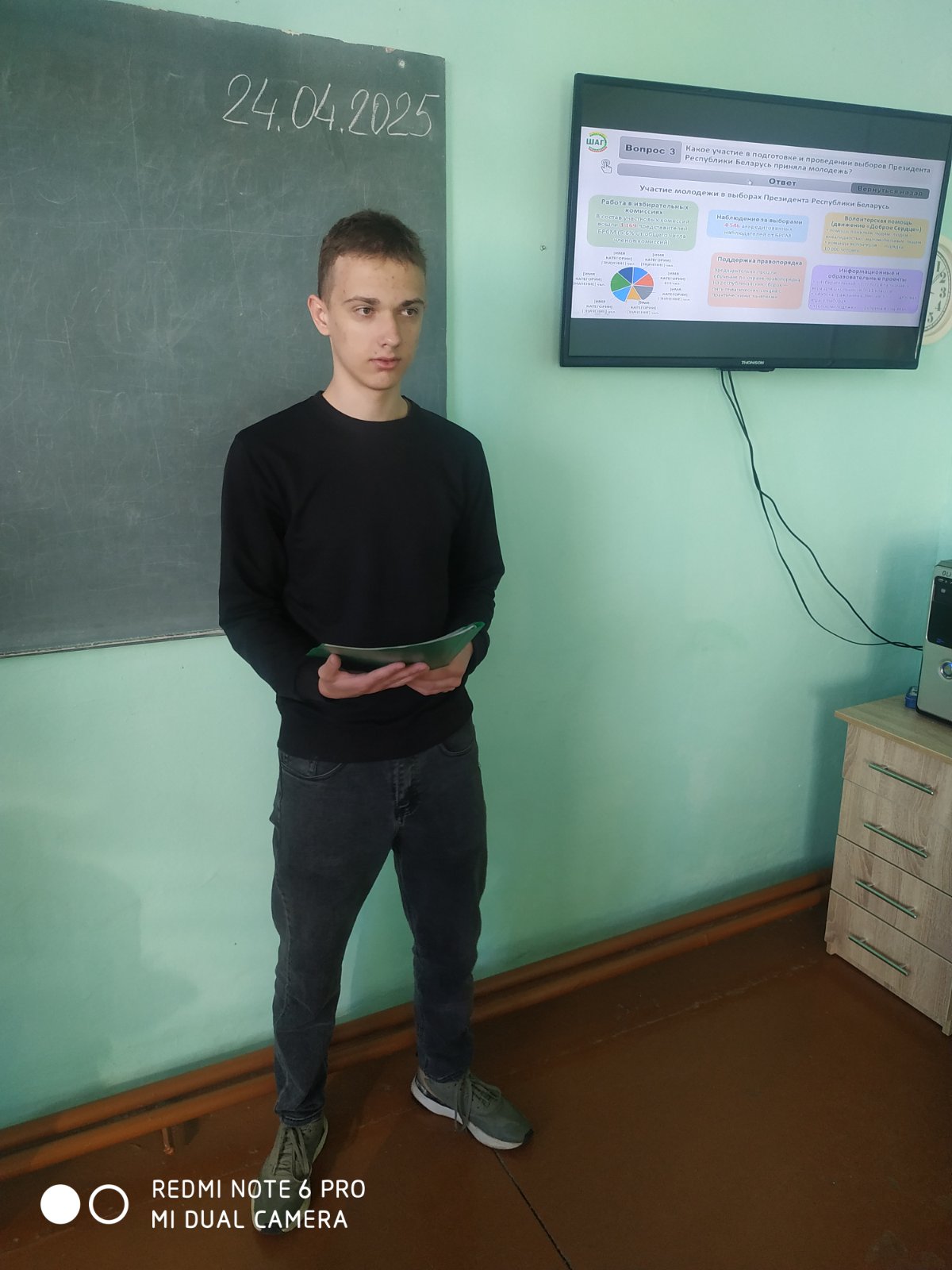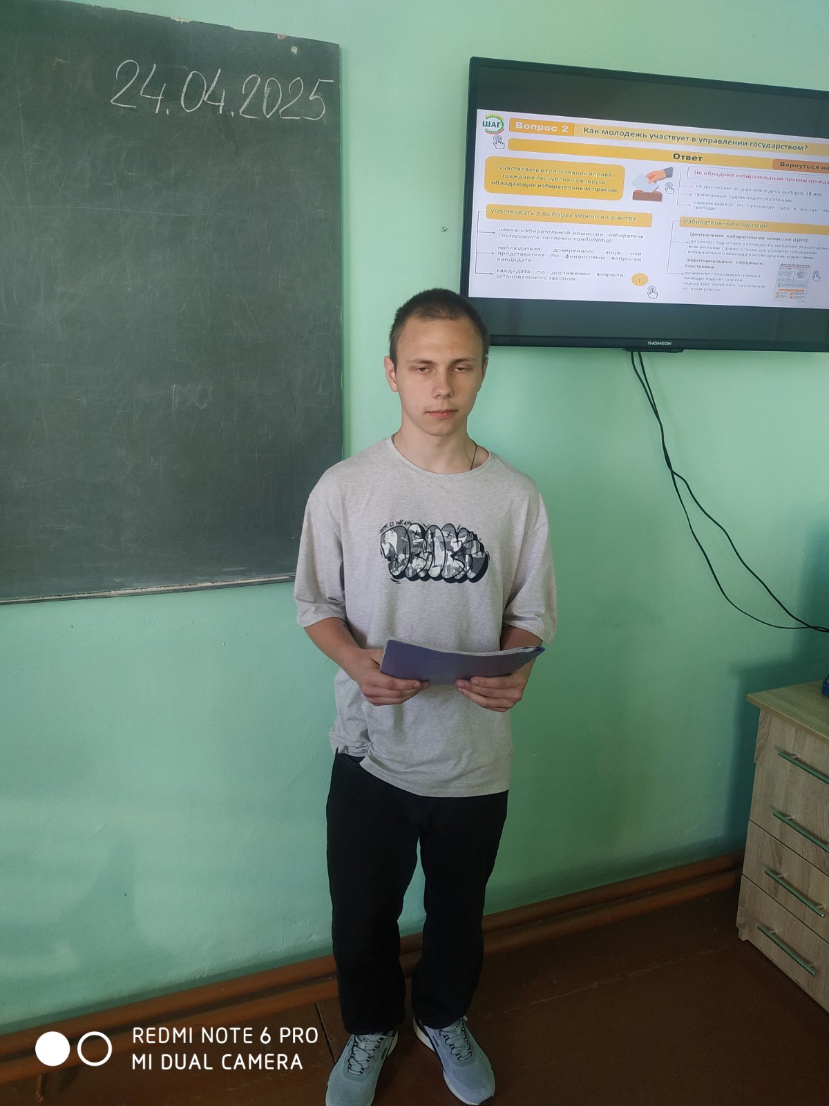 24.04.2025 года в группах 1 курса в рамках ШАГа прошло мероприятие "Молодость-время выбора. Управление государством" (об участии молодежи в выборах, право избирать и быть избранным в государственные органы).