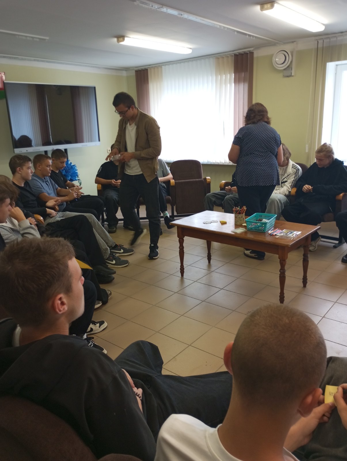 Ребята поближе познакомились друг с другом, многие примерили на себя роль ведущего. Ребят поддержали куратор группы Лапко И.А. и мастер производственного обучения Романчук Н.Ю., они принимали активное участие в выполнении предложенных упражнений.