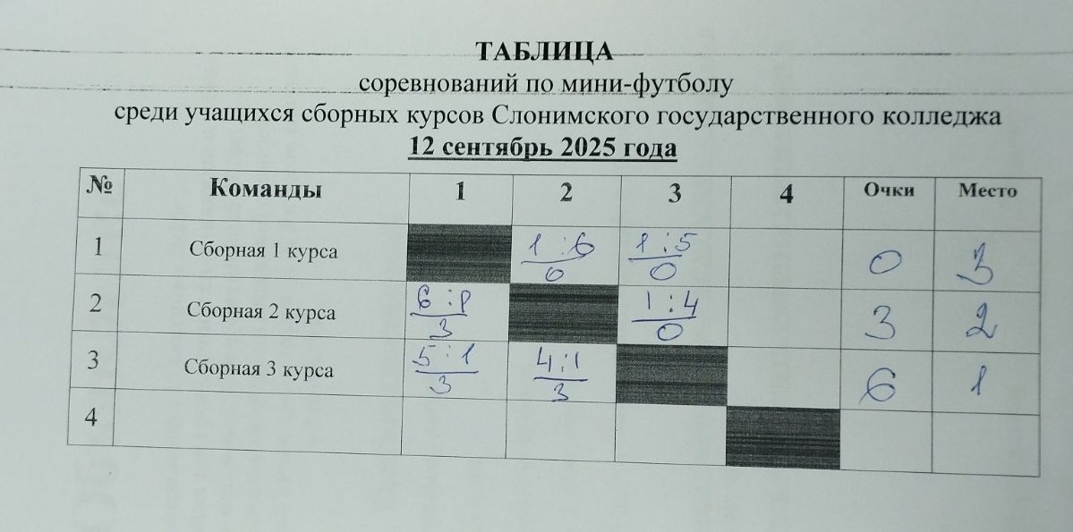 12.09.2025 года состоялся турнир по мини-футболу среди сборных 1, 2 и 3 курсов Слонимского государственного колледжа.